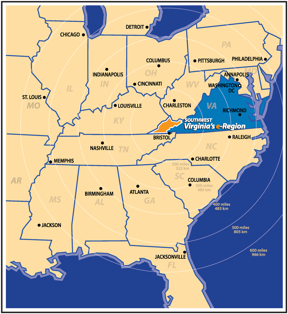 Russell County is part of the e-Region, a seven-county, one-city area in Southwest Virginia that is recognized as an emerging East Coast center for key areas of business: electronic information technology, energy, education, and emerging technologies.
